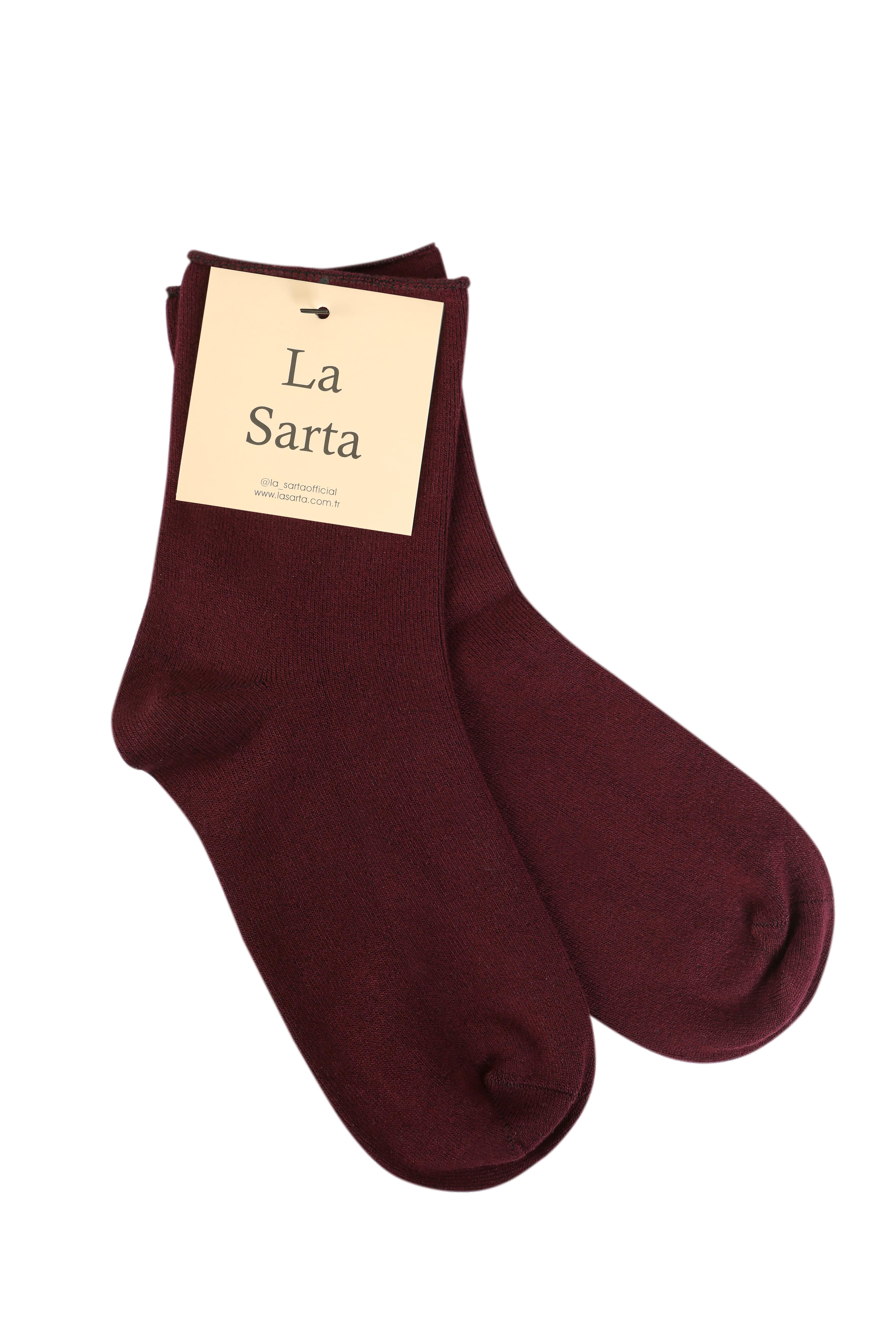 Yün Karışımlı Fitilli Uzun Çorap - Bordo
